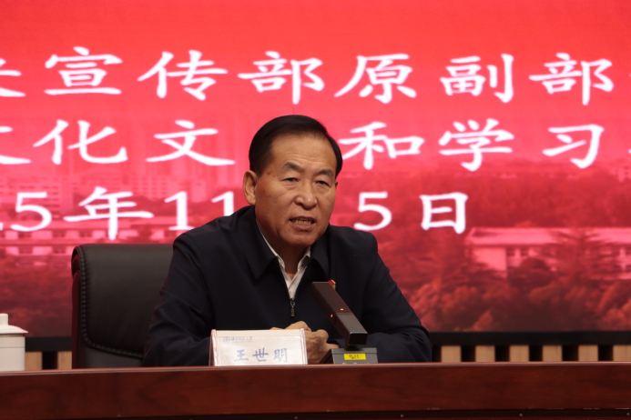 王世明以《社会主义核心价值观与中华文明》为题,结合习近平文化思想和习近平总书记关于社会主义核心价值观的系列重要论述,通过中华优秀传统文化典籍和现实案例,系统阐释了社会主义核心价值观的时代内涵、实践路径与重大意义,引导师生深入理解“天行健,君子以自强不息”所体现的“富强”理念,把握“厚德载物”所蕴含的“文明”“爱国”“友善”等价值追求,领会“和谐”理念中“中正”原则的智慧精髓,希望全体师生自觉以社会主义核心价值观凝心铸魂,在全面建设社会主义现代化国家新征程中践行使命担当、贡献智慧力量。
